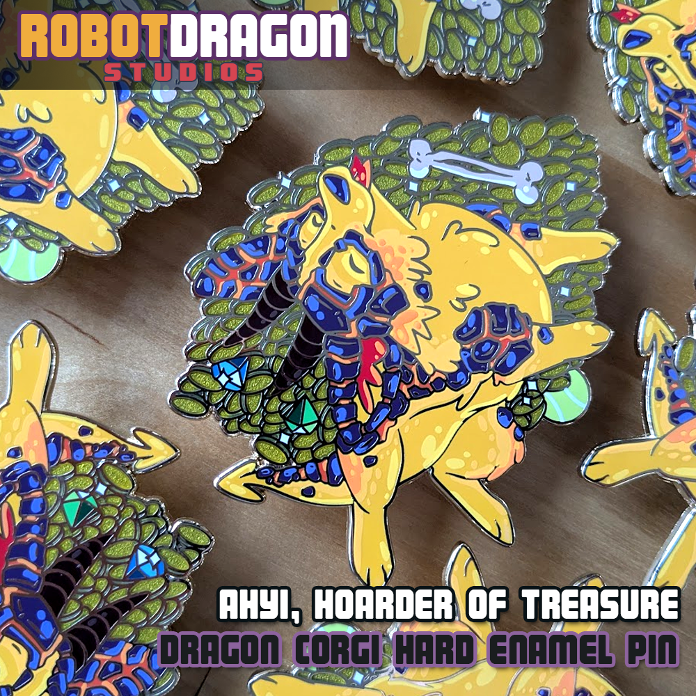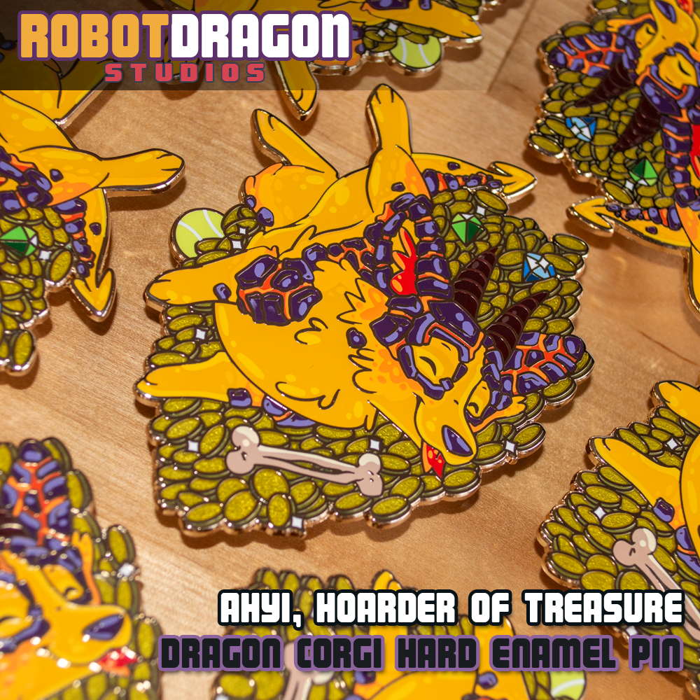 Ahyi the Dragon Corgi, Hoarder of Treasure Enamel Pin