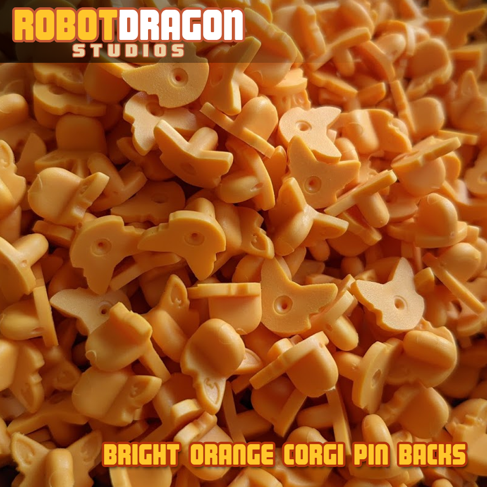 Add some cute flair to your product with these custom corgi pinbacks. They are unbranded so anyone can use them. They can also pass for a fox, wolf, or any other dog-like creature.