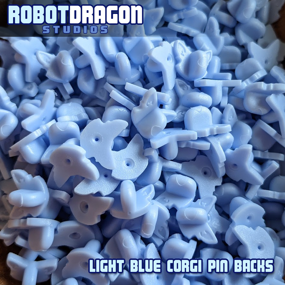 Add some cute flair to your product with these custom corgi pinbacks. They are unbranded so anyone can use them. They can also pass for a fox, wolf, or any other dog-like creature.