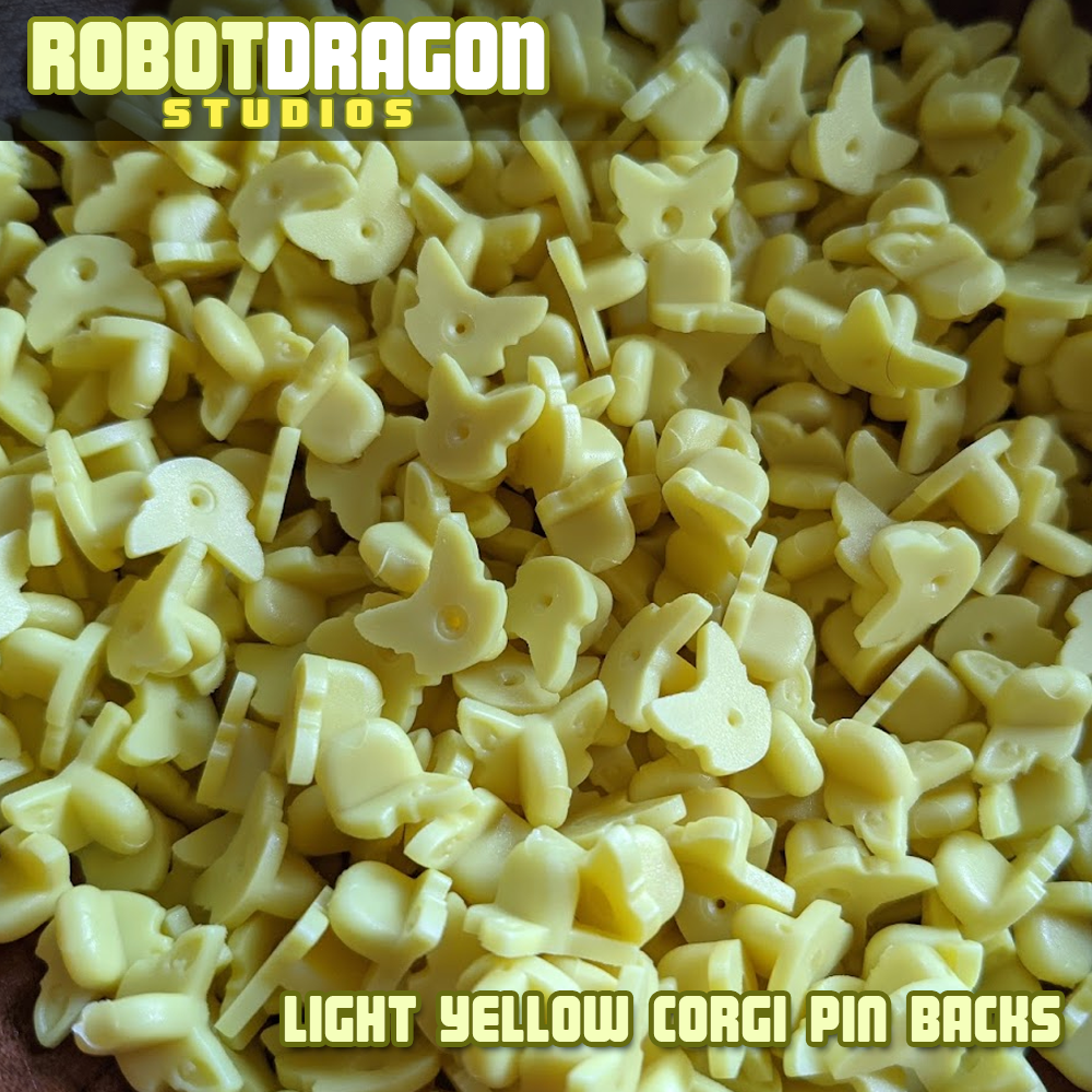 Add some cute flair to your product with these custom corgi pinbacks. They are unbranded so anyone can use them. They can also pass for a fox, wolf, or any other dog-like creature.