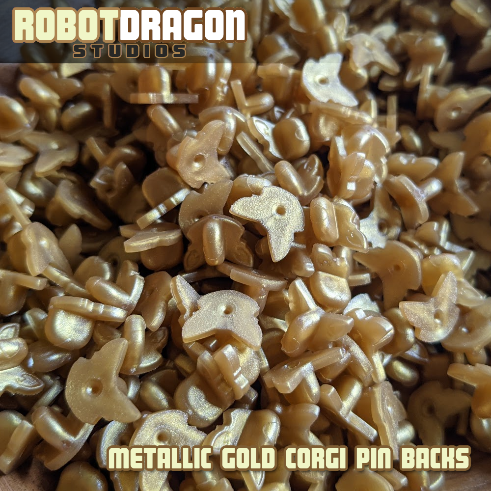 Add some cute flair to your product with these custom corgi pinbacks. They are unbranded so anyone can use them. They can also pass for a fox, wolf, or any other dog-like creature.