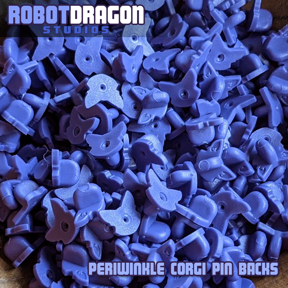 Add some cute flair to your product with these custom corgi pinbacks. They are unbranded so anyone can use them. They can also pass for a fox, wolf, or any other dog-like creature.