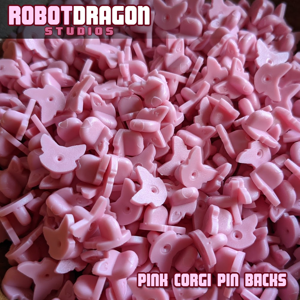 Add some cute flair to your product with these custom corgi pinbacks. They are unbranded so anyone can use them. They can also pass for a fox, wolf, or any other dog-like creature.