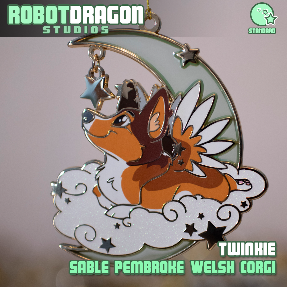 Ornaments designed with our precious corgis in mind. String attachment and stand not included. Moon and coat colors may vary as they are hand mixed.